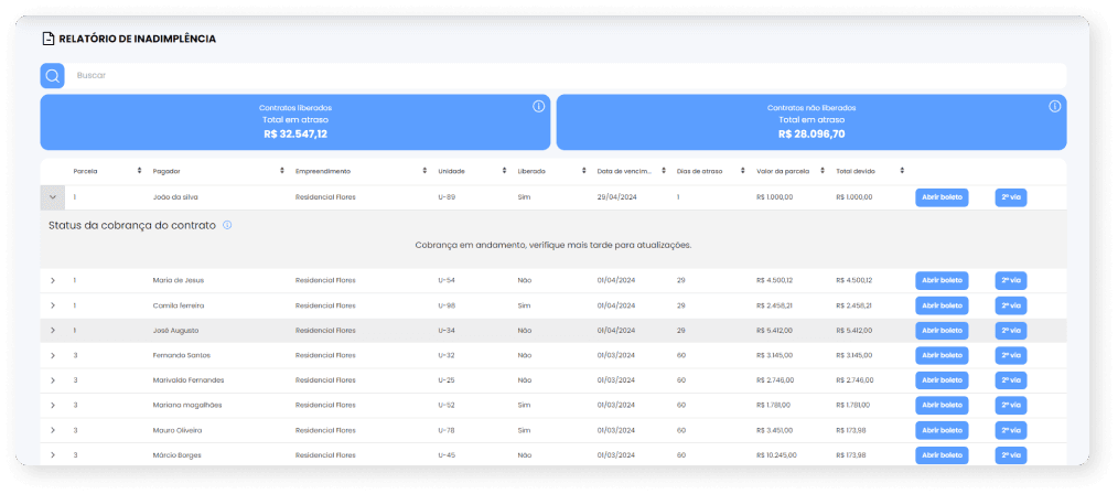 Controle todos os contratos com parcelas atrasadas